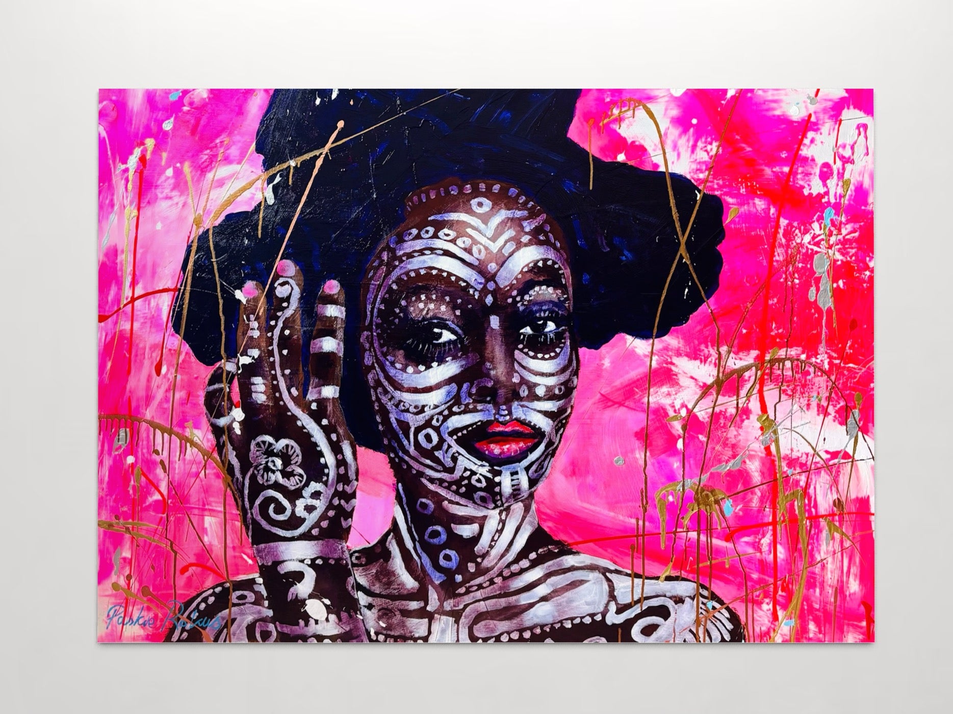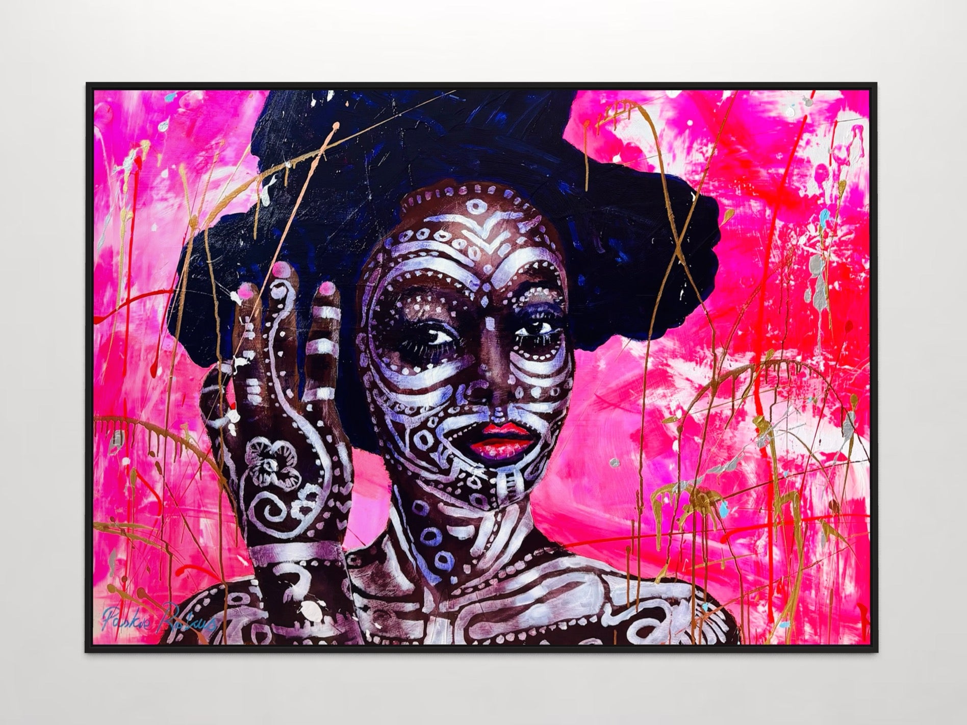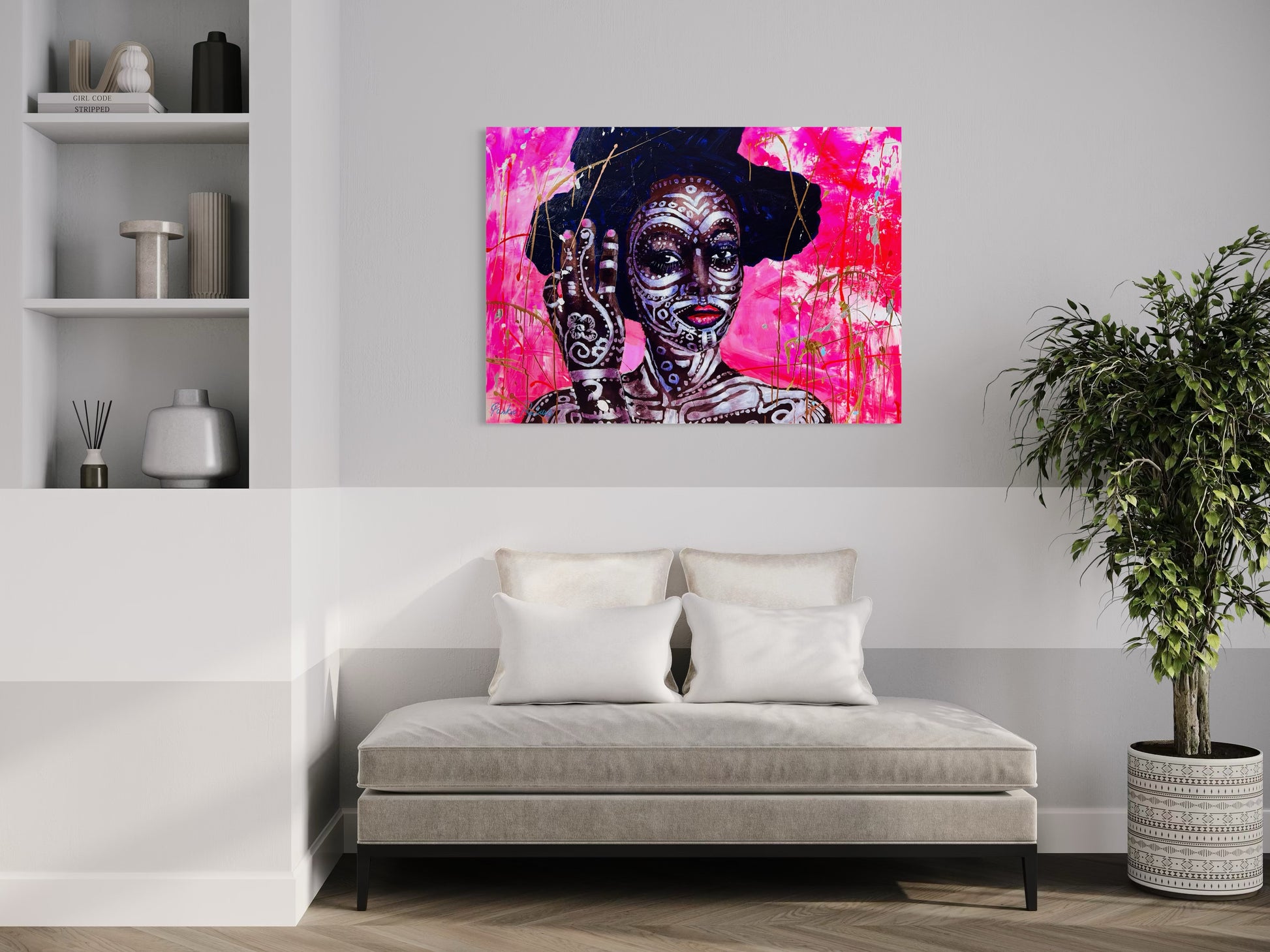 - De schilderijen worden standaard afgewerkt met een mat zwarte zijkant, waardoor een lijst niet noodzakelijk is.
