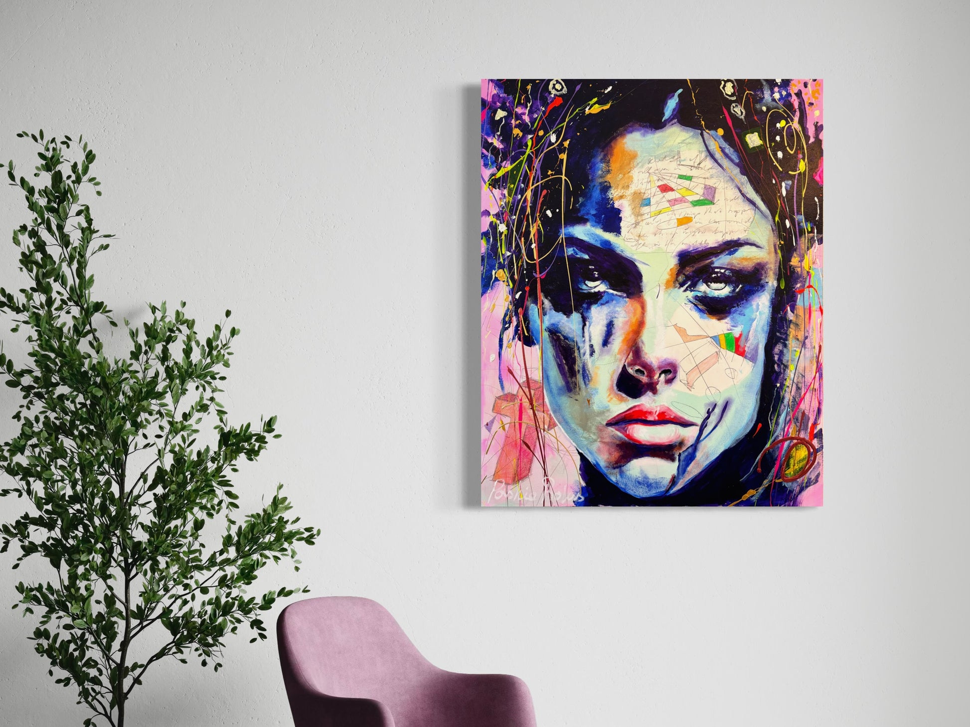 - De schilderijen worden standaard afgewerkt met een mat zwarte zijkant, waardoor een lijst niet noodzakelijk is.