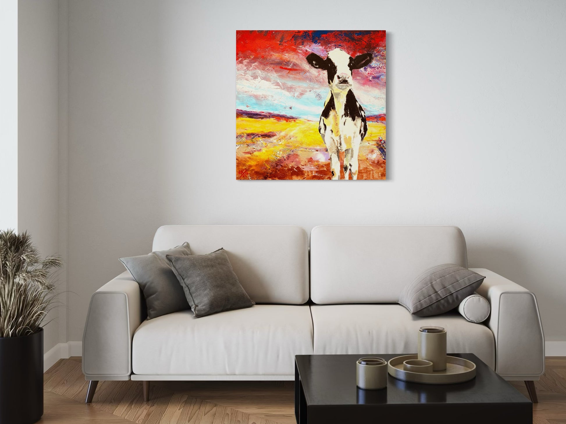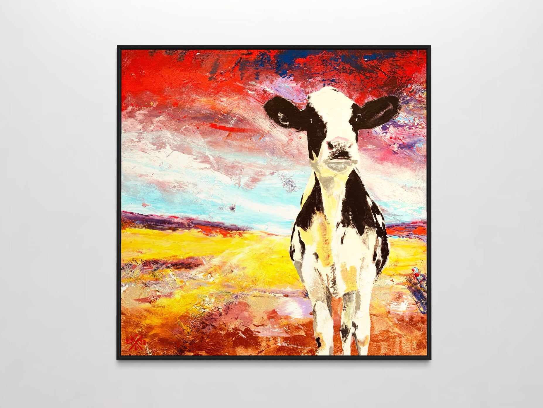 - De schilderijen worden standaard afgewerkt met een mat zwarte zijkant, waardoor een lijst niet noodzakelijk is.