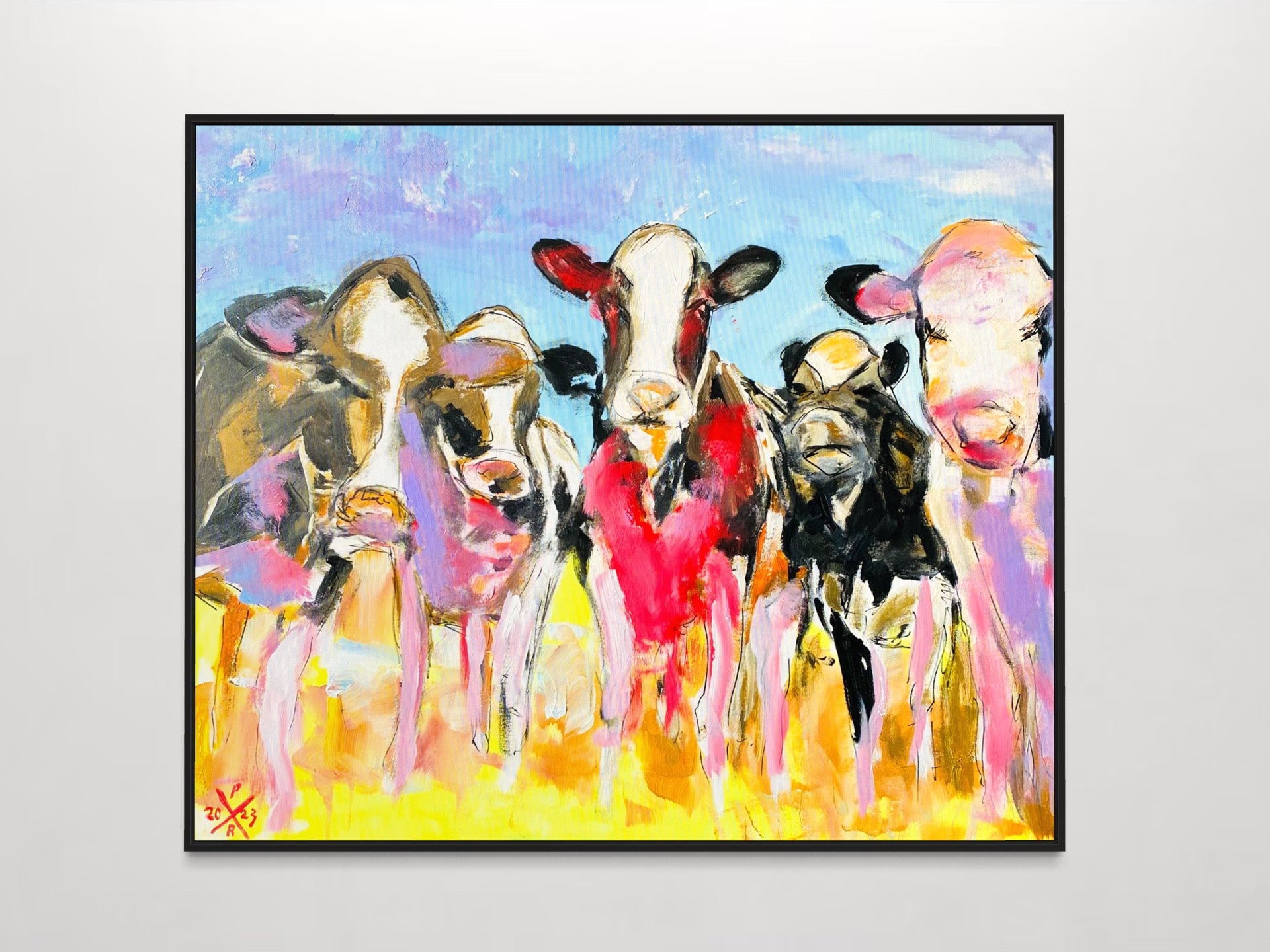 - De schilderijen worden standaard afgewerkt met een mat zwarte zijkant, waardoor een lijst niet noodzakelijk is.