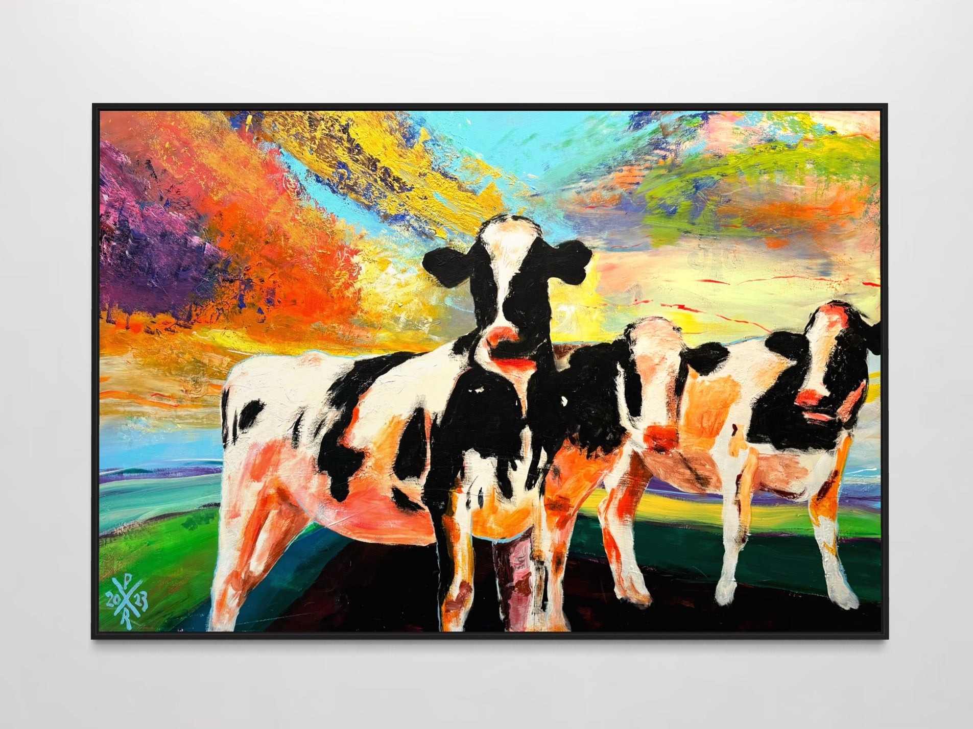 - De schilderijen worden standaard afgewerkt met een mat zwarte zijkant, waardoor een lijst niet noodzakelijk is.