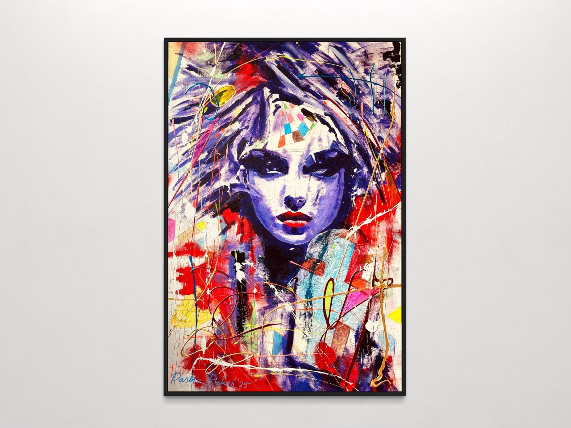 - De schilderijen worden standaard afgewerkt met een mat zwarte zijkant, waardoor een lijst niet noodzakelijk is.