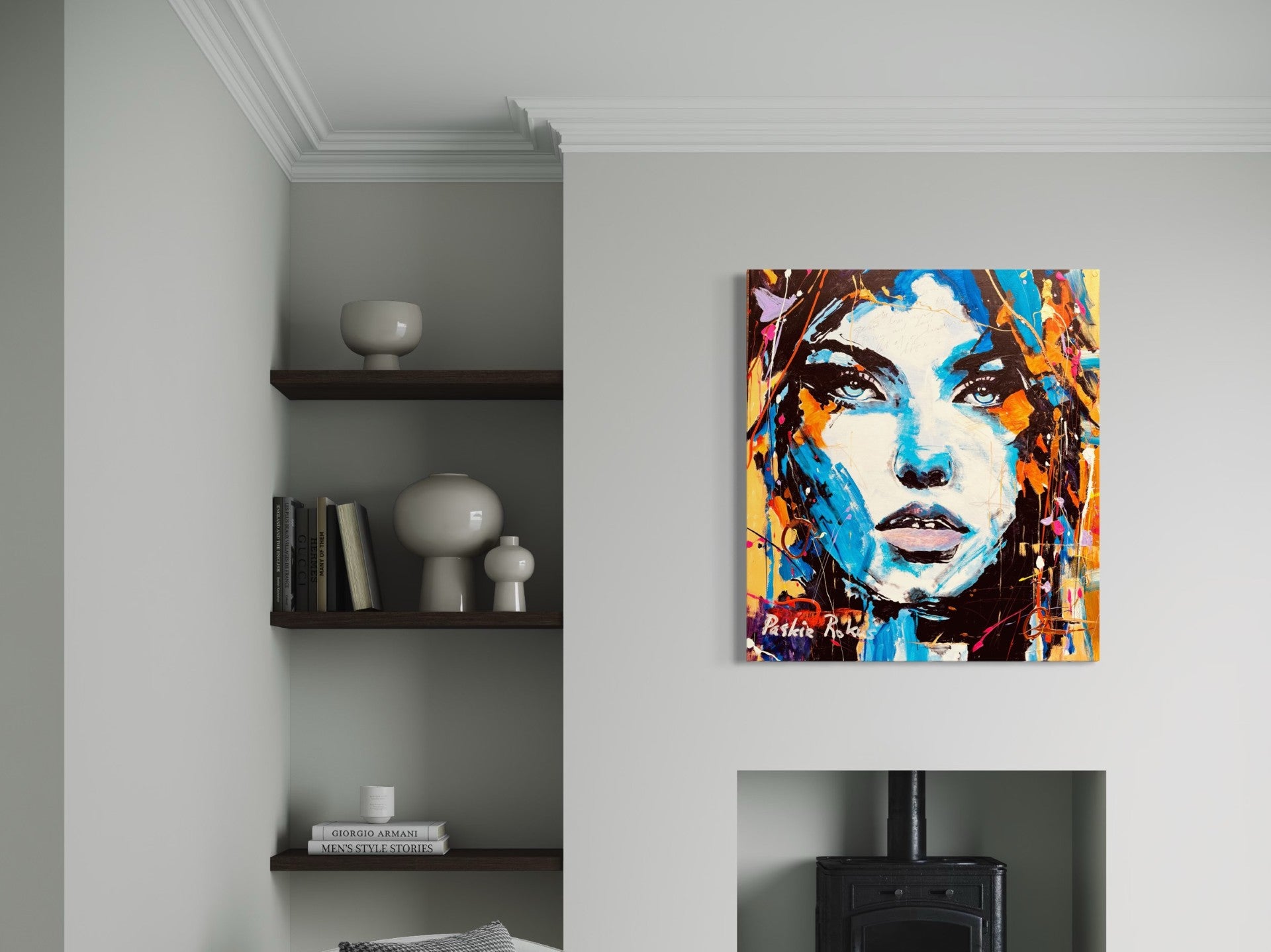 - De schilderijen worden standaard afgewerkt met een mat zwarte zijkant, waardoor een lijst niet noodzakelijk is.