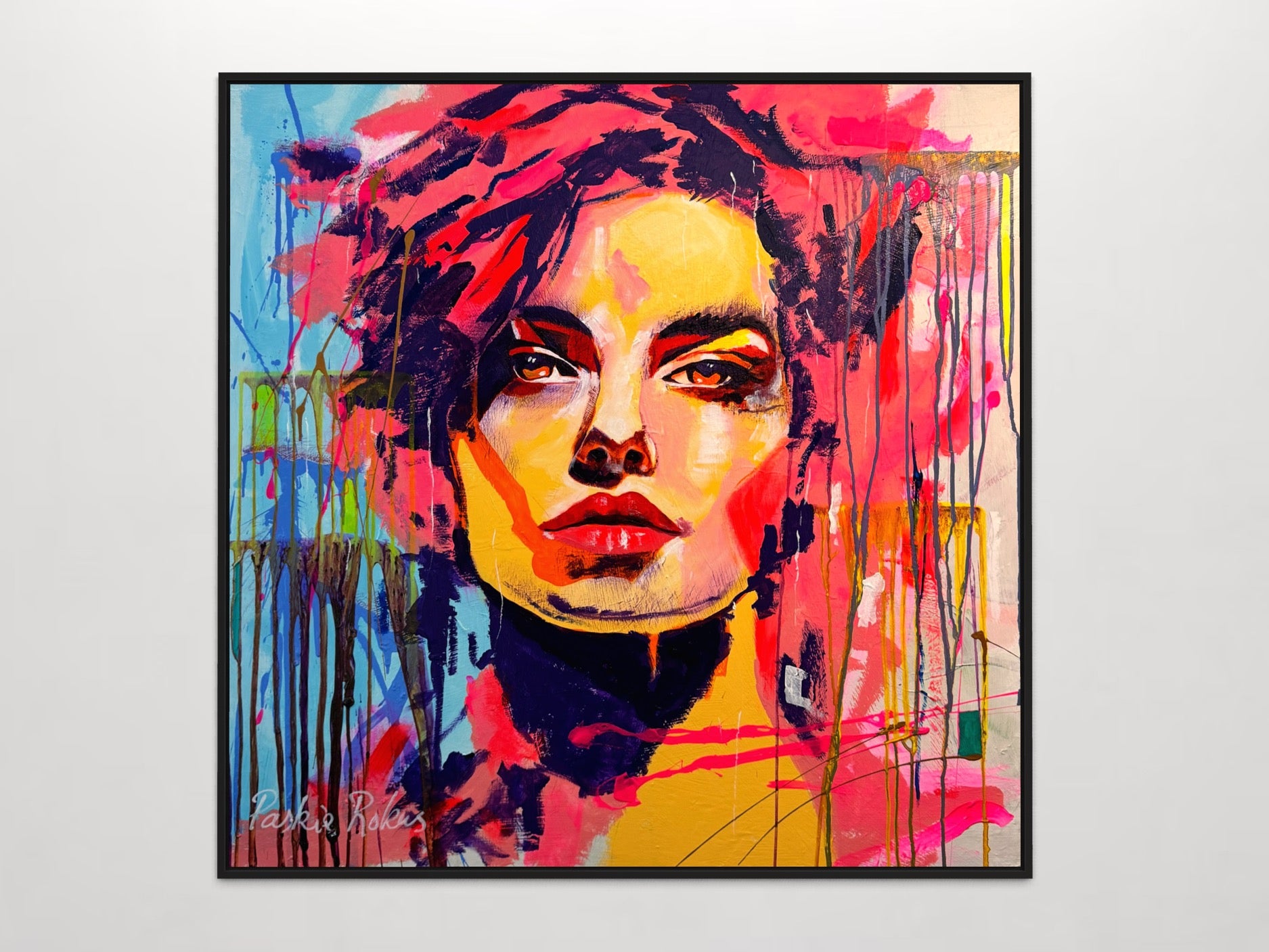 - De schilderijen worden standaard afgewerkt met een mat zwarte zijkant, waardoor een lijst niet noodzakelijk is.