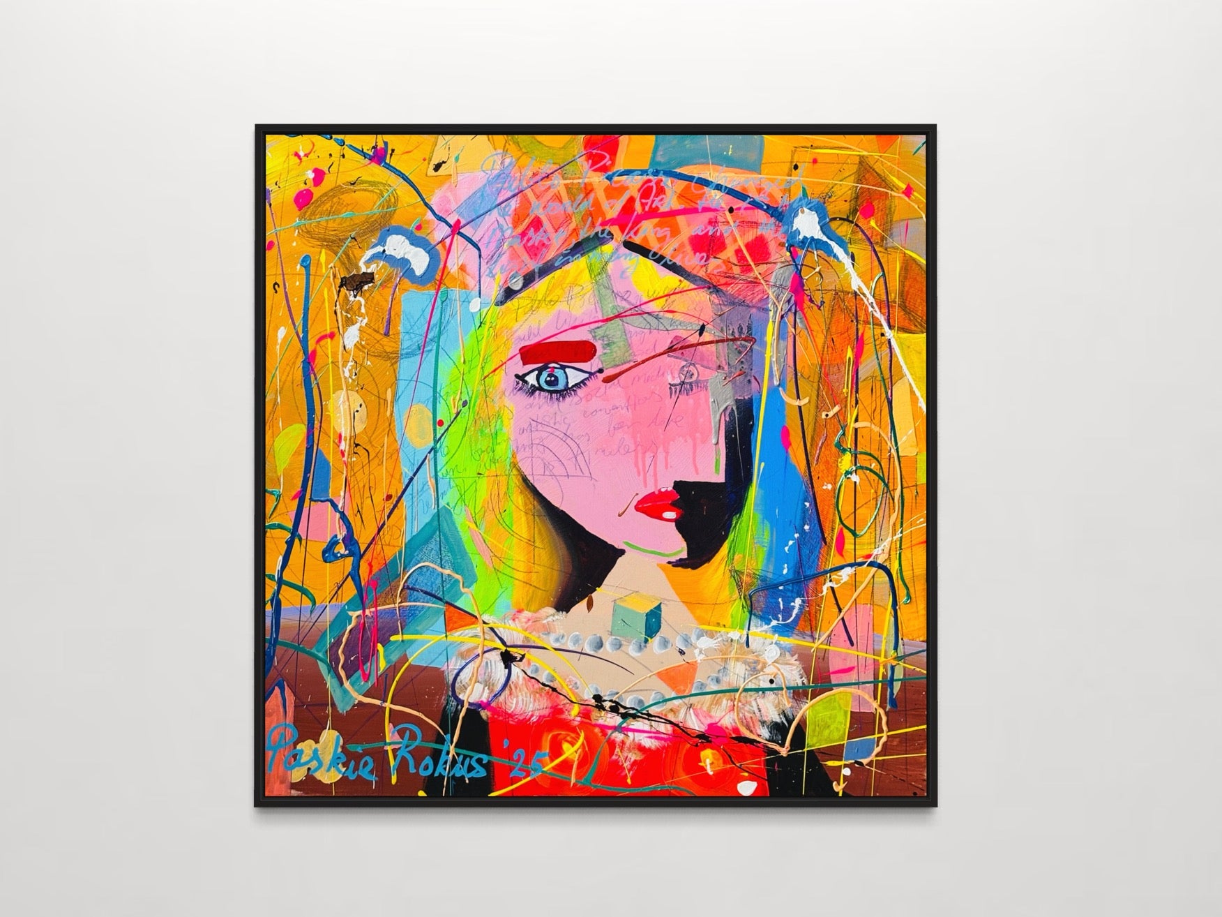 - De schilderijen worden standaard afgewerkt met een mat zwarte zijkant, waardoor een lijst niet noodzakelijk is.