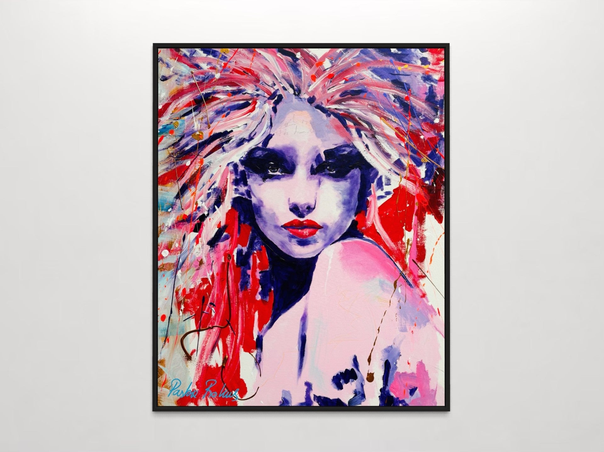 - De schilderijen worden standaard afgewerkt met een mat zwarte zijkant, waardoor een lijst niet noodzakelijk is.