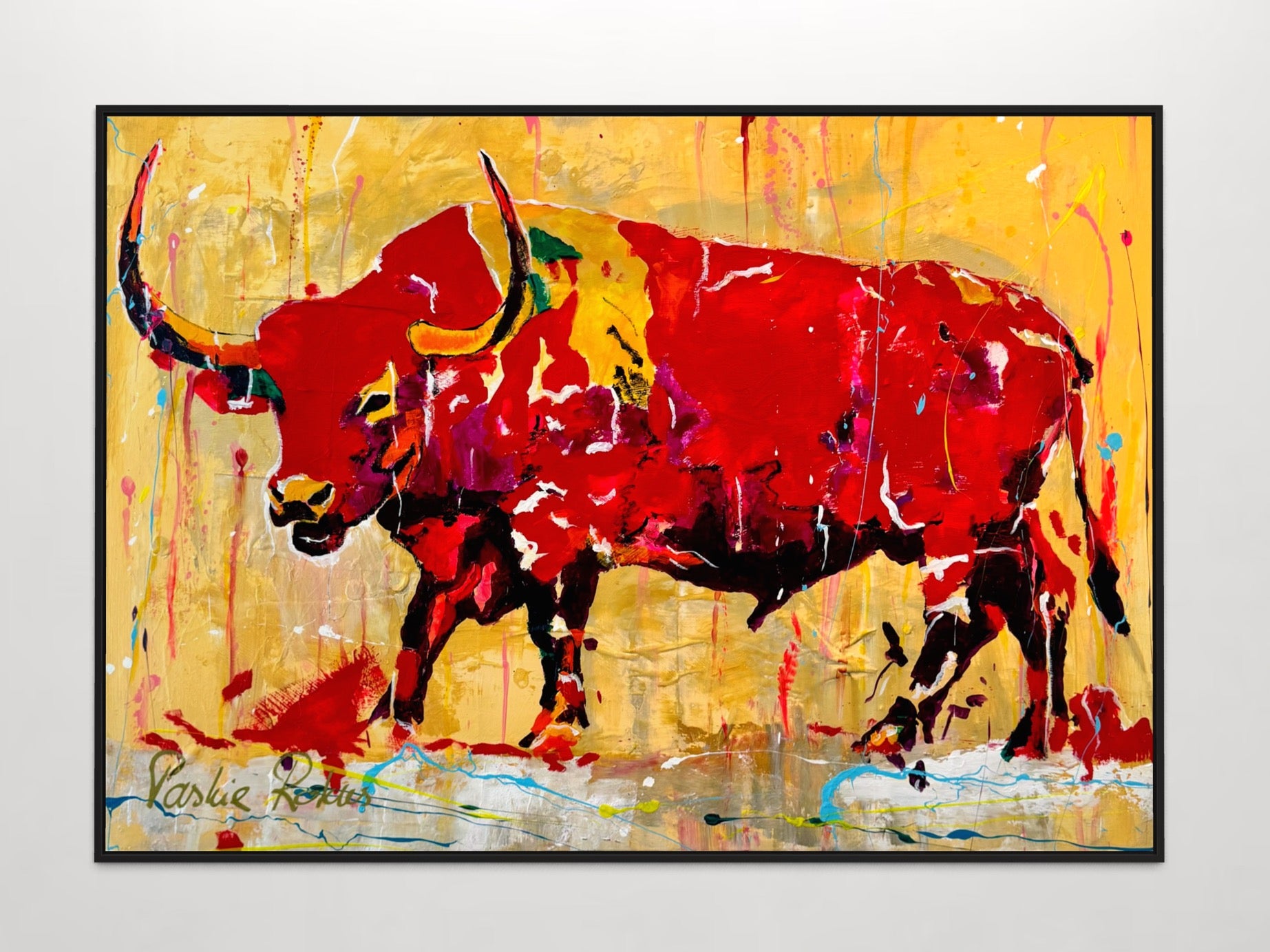 - De schilderijen worden standaard afgewerkt met een mat zwarte zijkant, waardoor een lijst niet noodzakelijk is.