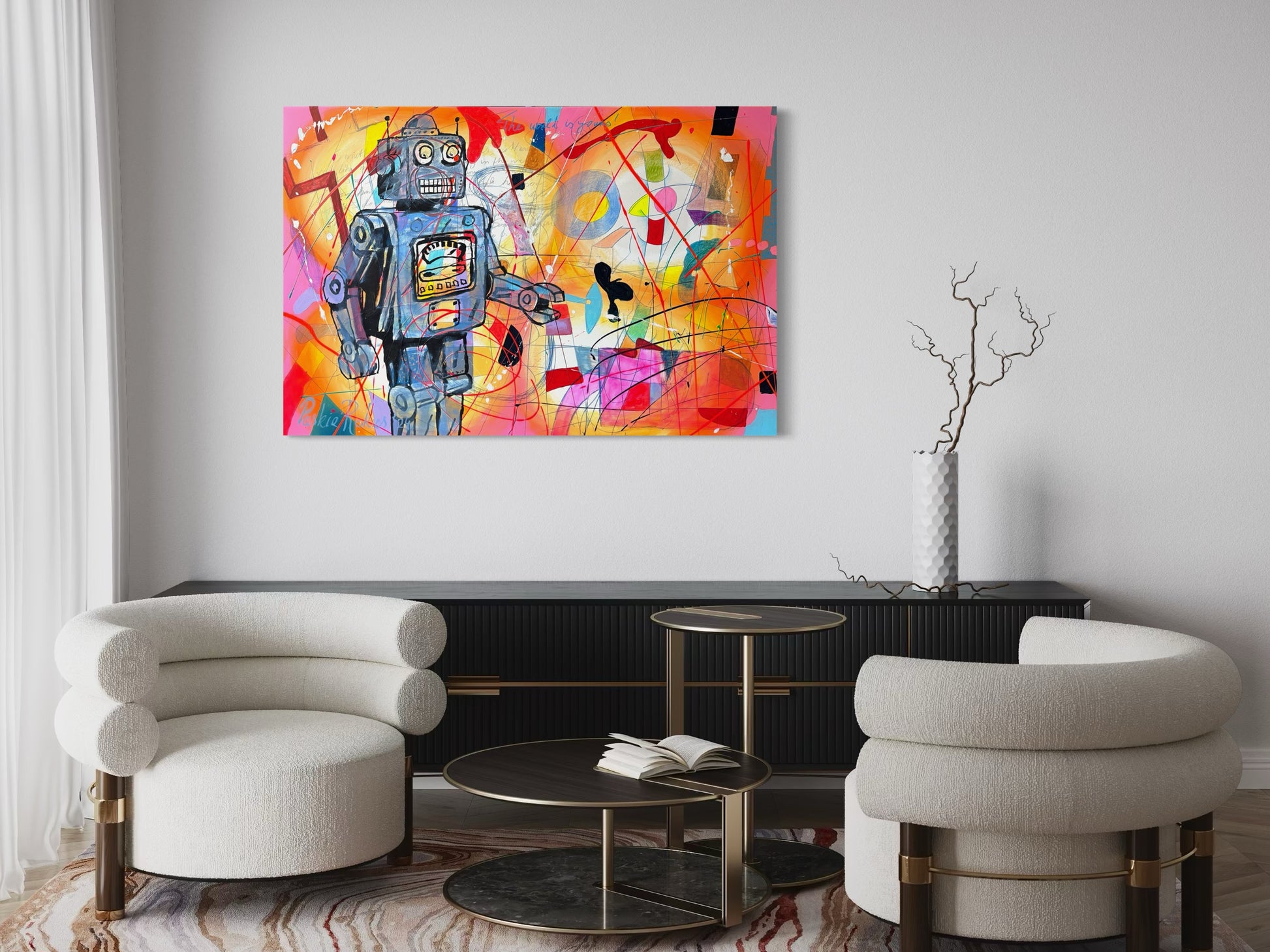 - De schilderijen worden standaard afgewerkt met een mat zwarte zijkant, waardoor een lijst niet noodzakelijk is.
