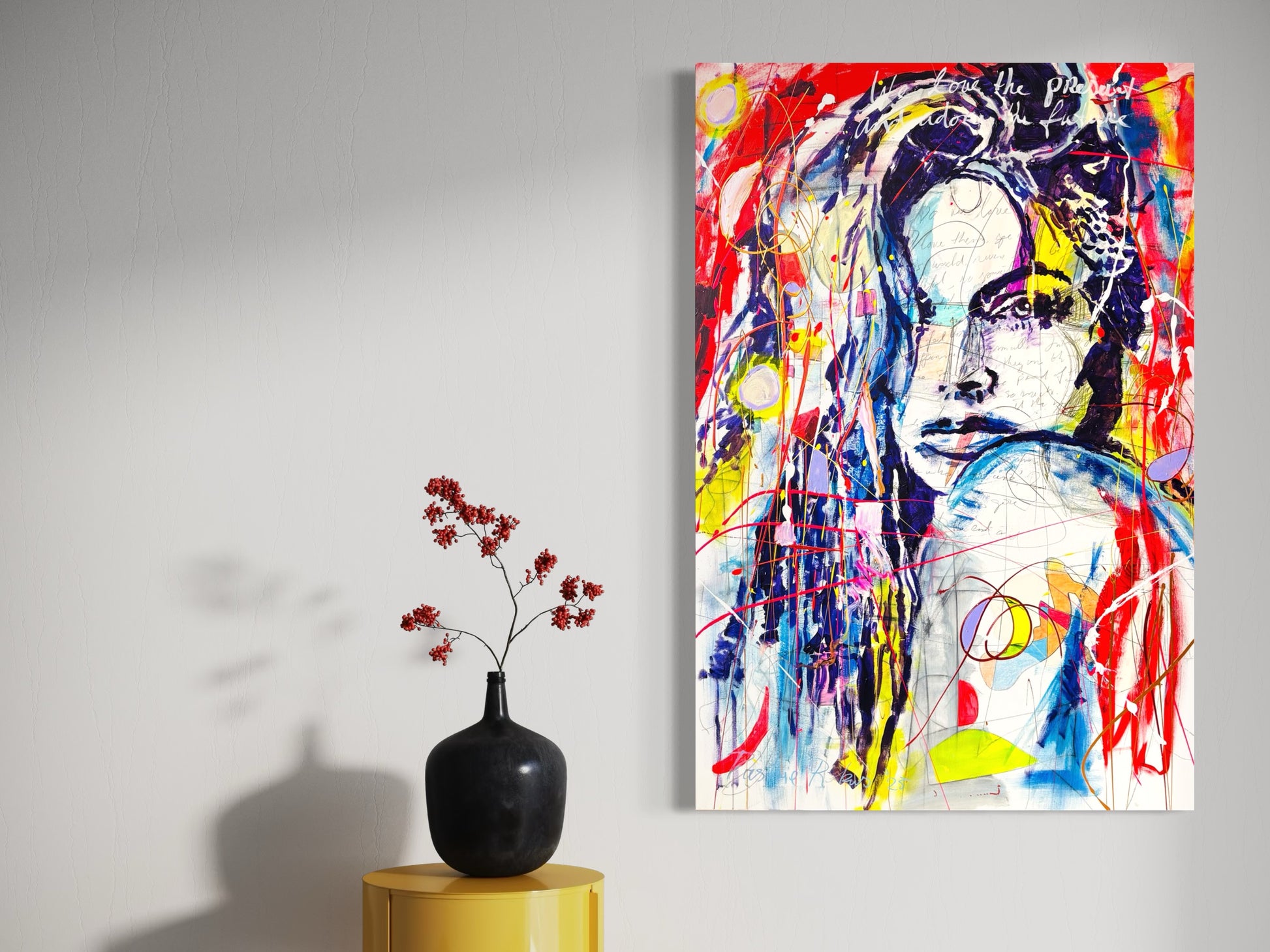 - De schilderijen worden standaard afgewerkt met een mat zwarte zijkant, waardoor een lijst niet noodzakelijk is.